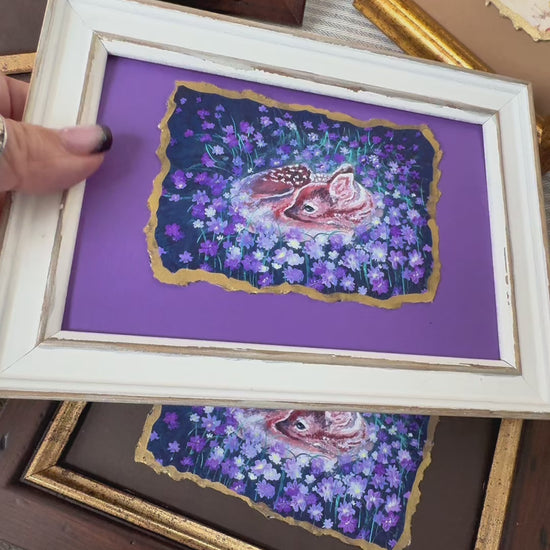 Baby Deer Among the Violets – Hand-Deckled Artisan Mini Print