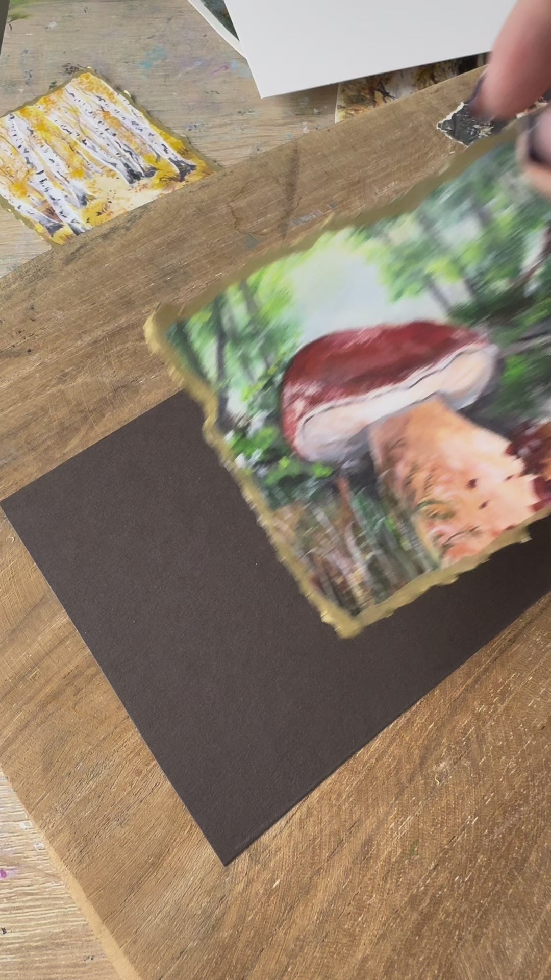 Each mini print is carefully mounted on thick 4×6″ (10×15 cm) paper, hand-torn for a natural deckled edge and finished with golden paint along the border. The result is a warm, artisan look - a blend of fine art print and handmade touch, perfect for framing or gifting.