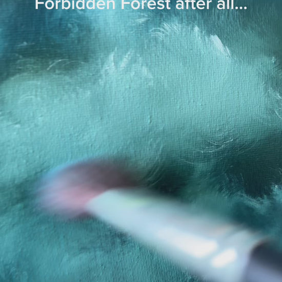 “Echoes in the Mist” reveals layers of evergreens fading into fog, a dreamy vision of silence and hidden paths. This painting carries the essence of forest mystery and quiet reflection.