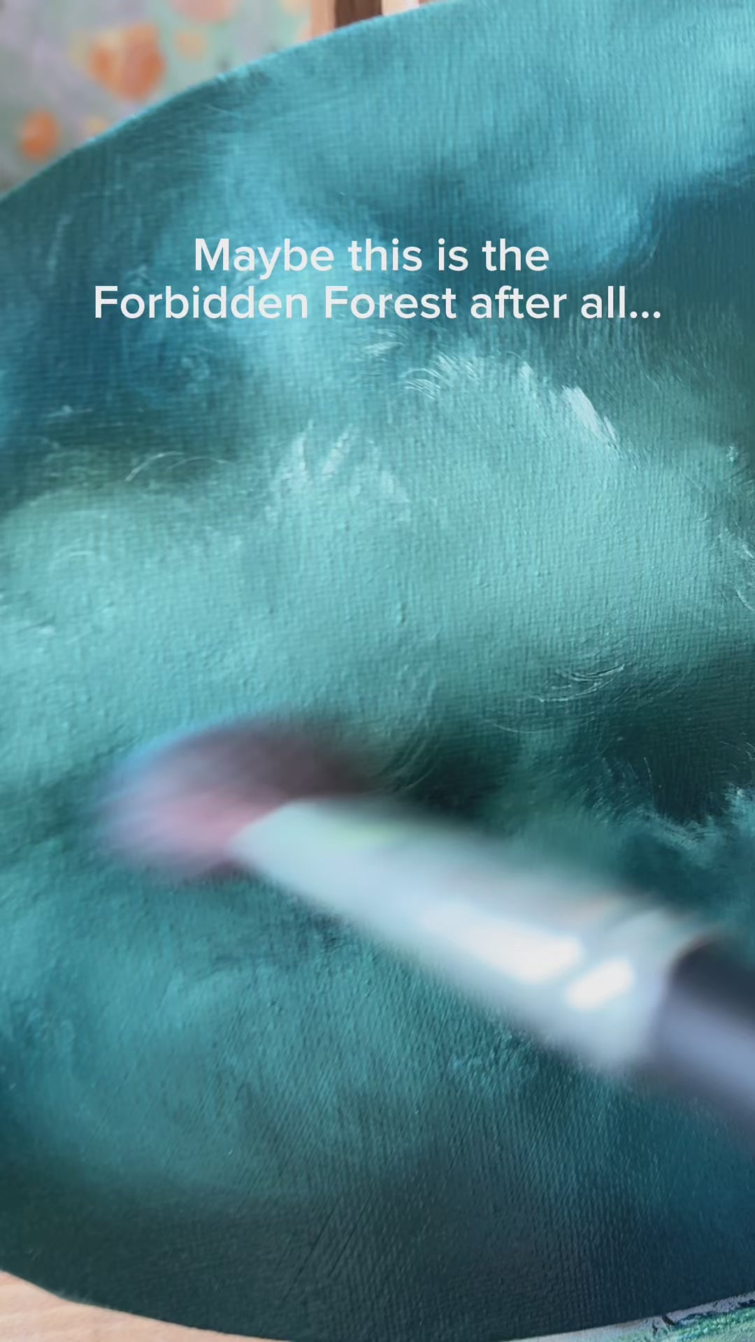 Echoes in the Mist - Night Forest Landscape Oval Painting