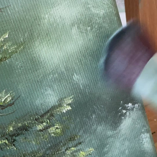 “Evergreen Sentinel” stands tall in stillness, a single evergreen painted with depth and strength. This artwork captures the quiet majesty of a pine tree rooted in the heart of the forest.