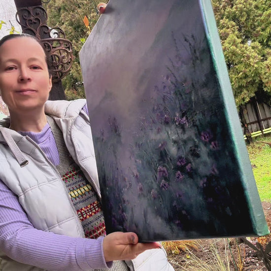 The painting invites a slow look: shifting tones, subtle texture, and the sense of petals moving in the early light. It works beautifully as a standalone statement piece or as part of a serene, nature-inspired wall.