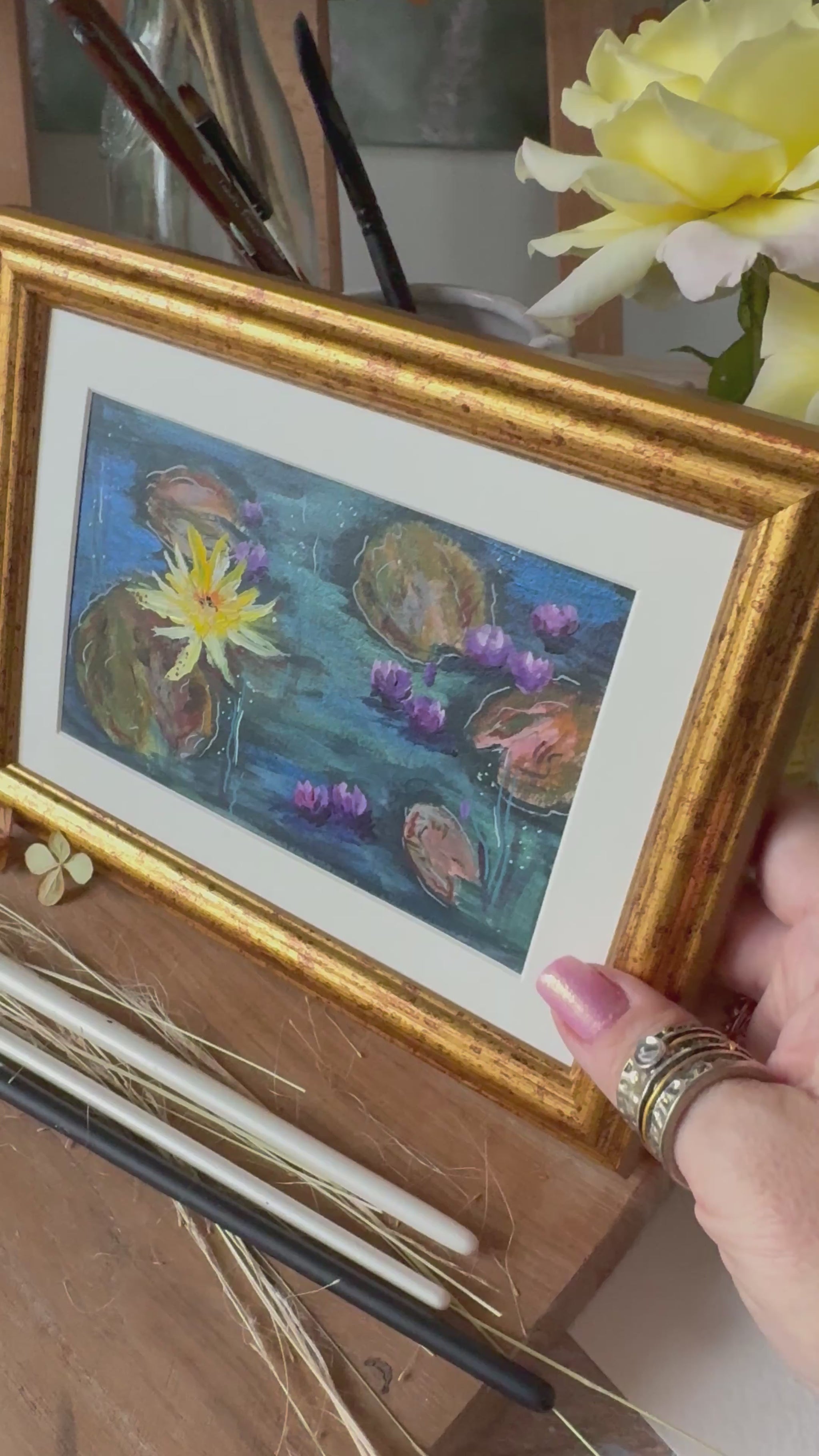 A series of miniatures inspired by the Impressionists, especially Claude Monet’s lily ponds. Yet these works carry their own voice - with pearlescent tones that catch the light and make the water shimmer.
