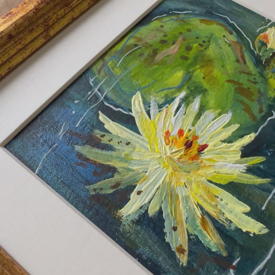 Each small painting is a page from a September diary, capturing quiet moments by the pond: lilies unfolding in moods that shift from morning freshness to moonlit glow.