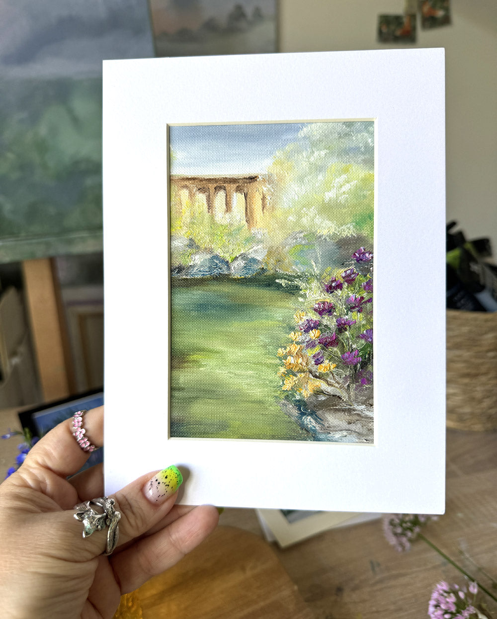 Every miniature comes with a cardboard passe-partout (mat), making it easy to display on a shelf or frame as part of a gallery wall.