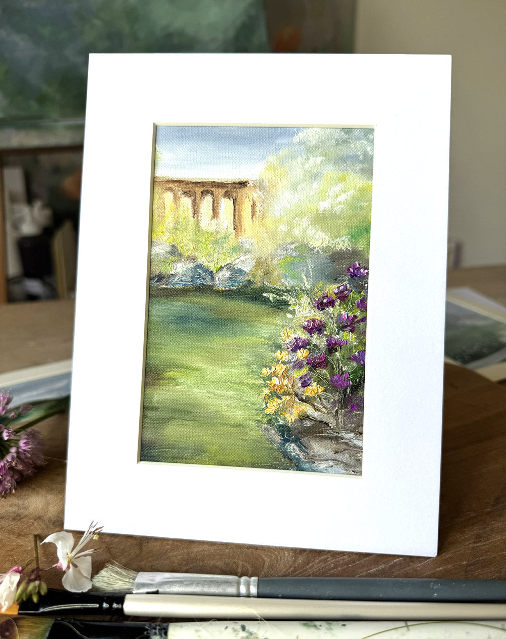 Golden light over stone arches, a riverbank in bloom, and the warmth of a timeless afternoon - a memory of summer in Italy, captured on canvas. Let it bring a touch of Mediterranean calm home.