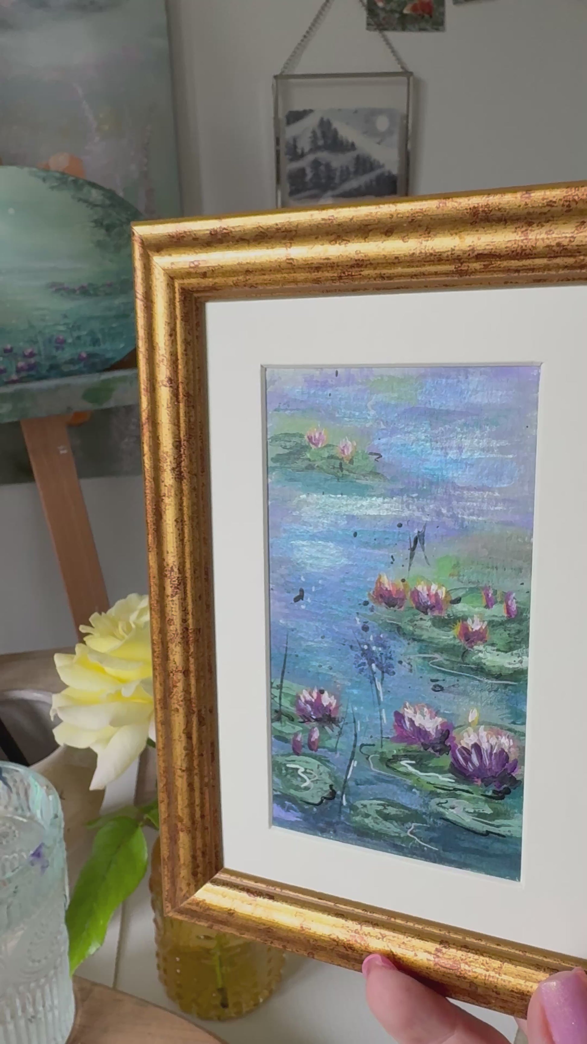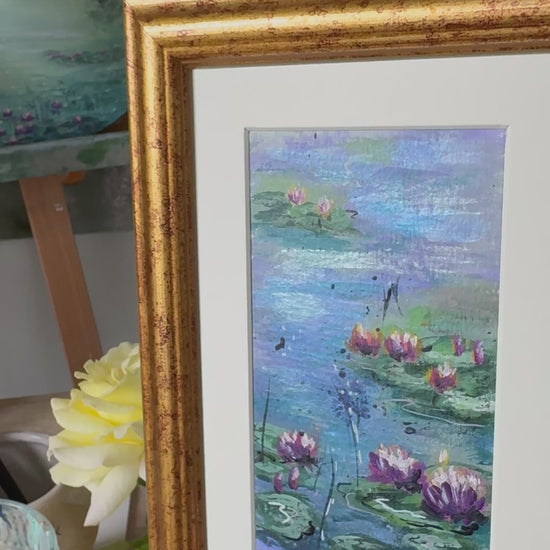 A series of miniatures inspired by the Impressionists, especially Claude Monet’s lily ponds. Yet these works carry their own voice - with pearlescent tones that catch the light and make the water shimmer.