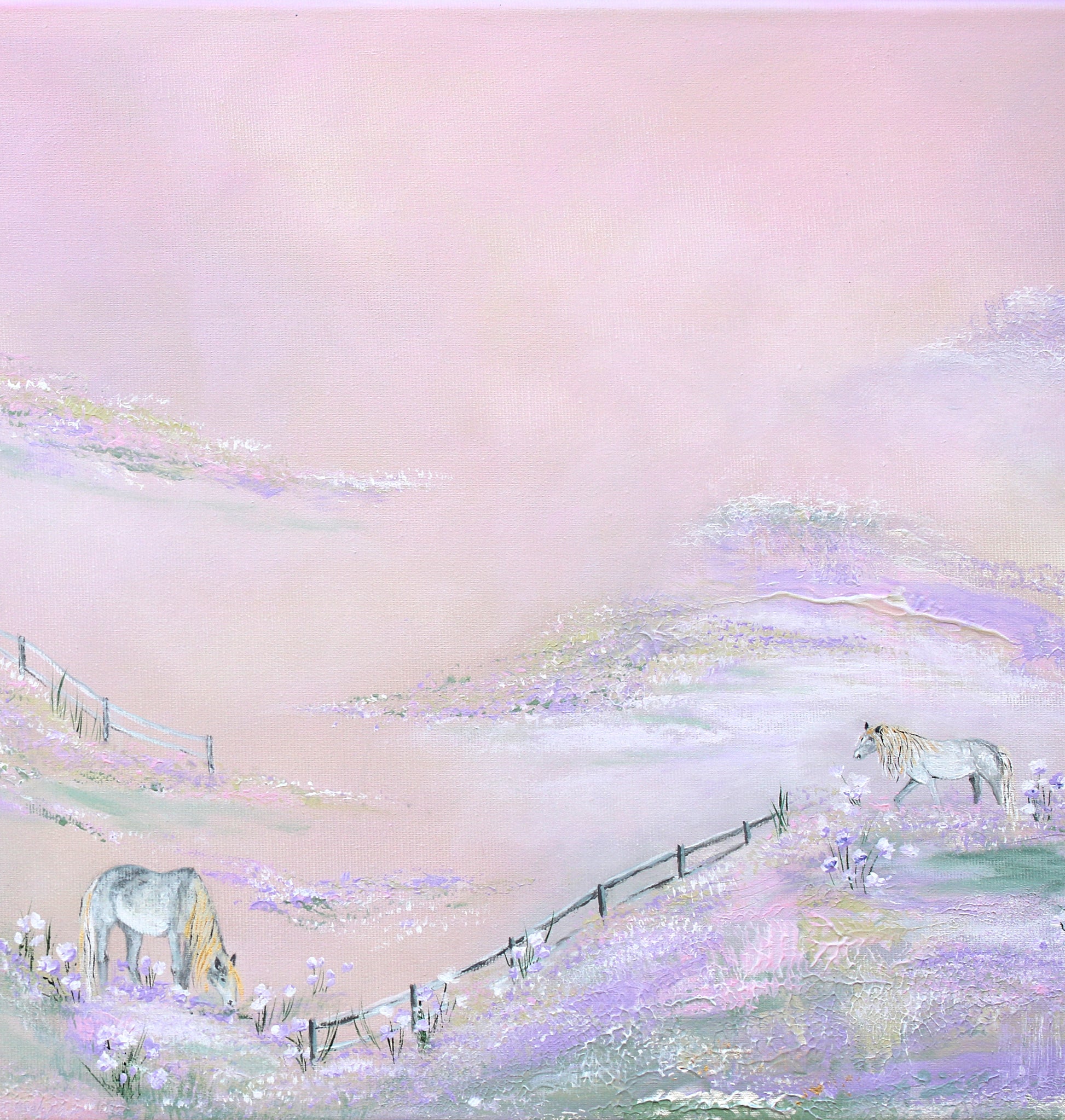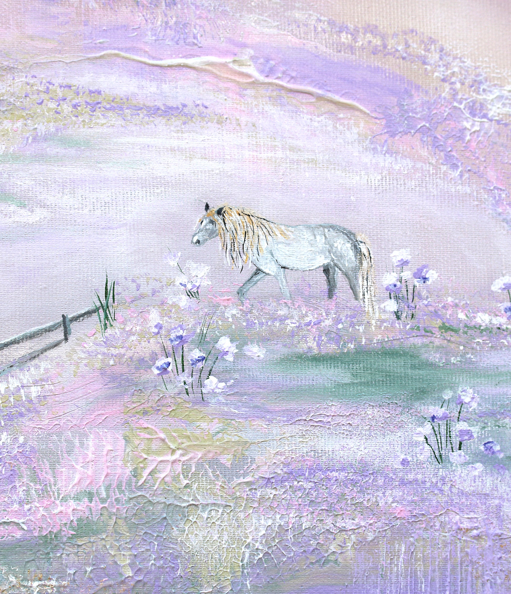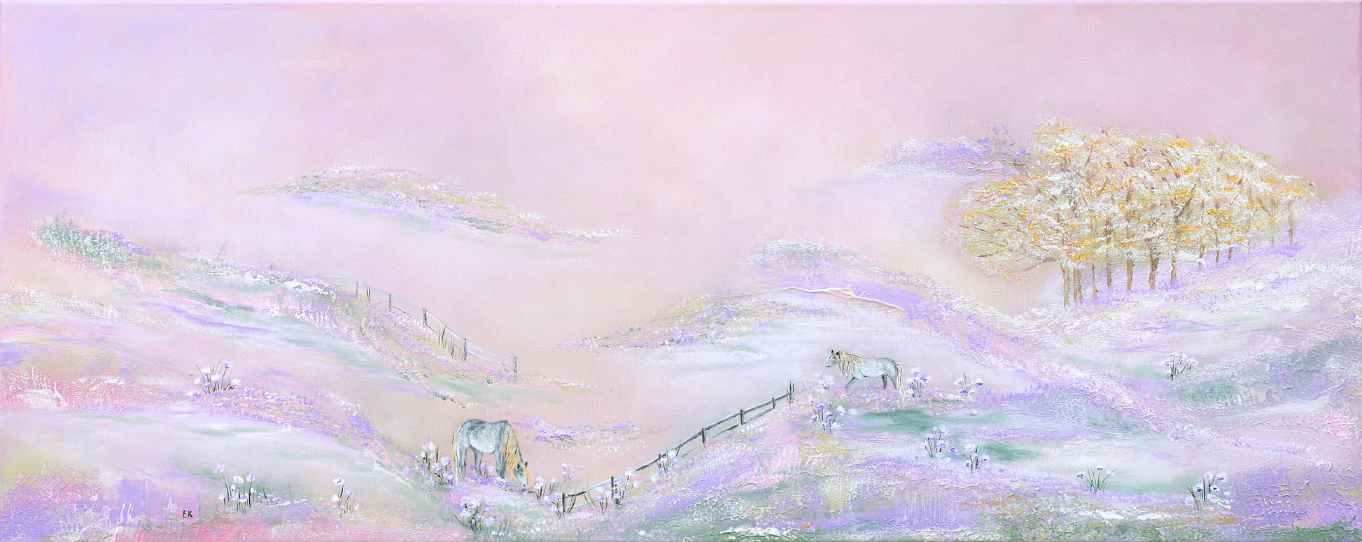A heavenly place where white horses with golden manes and forelocks frolic in blooming meadows. Where the air is sweet, and you can still harvest delicious fruit from an abandoned orchard.