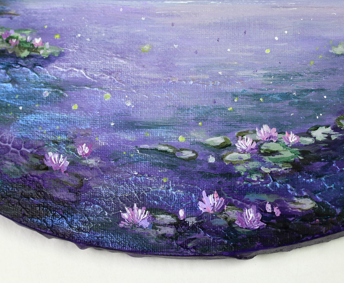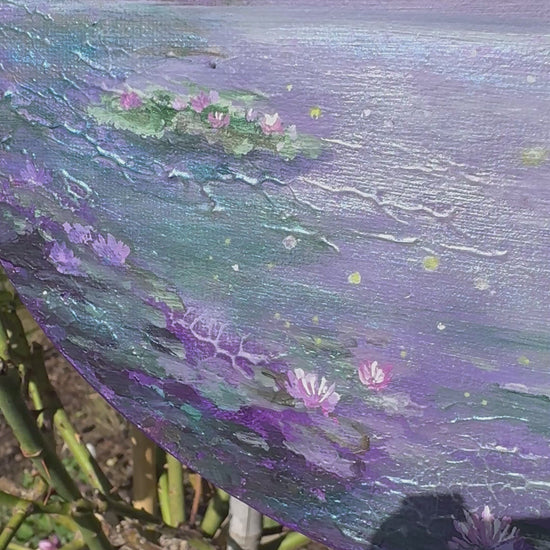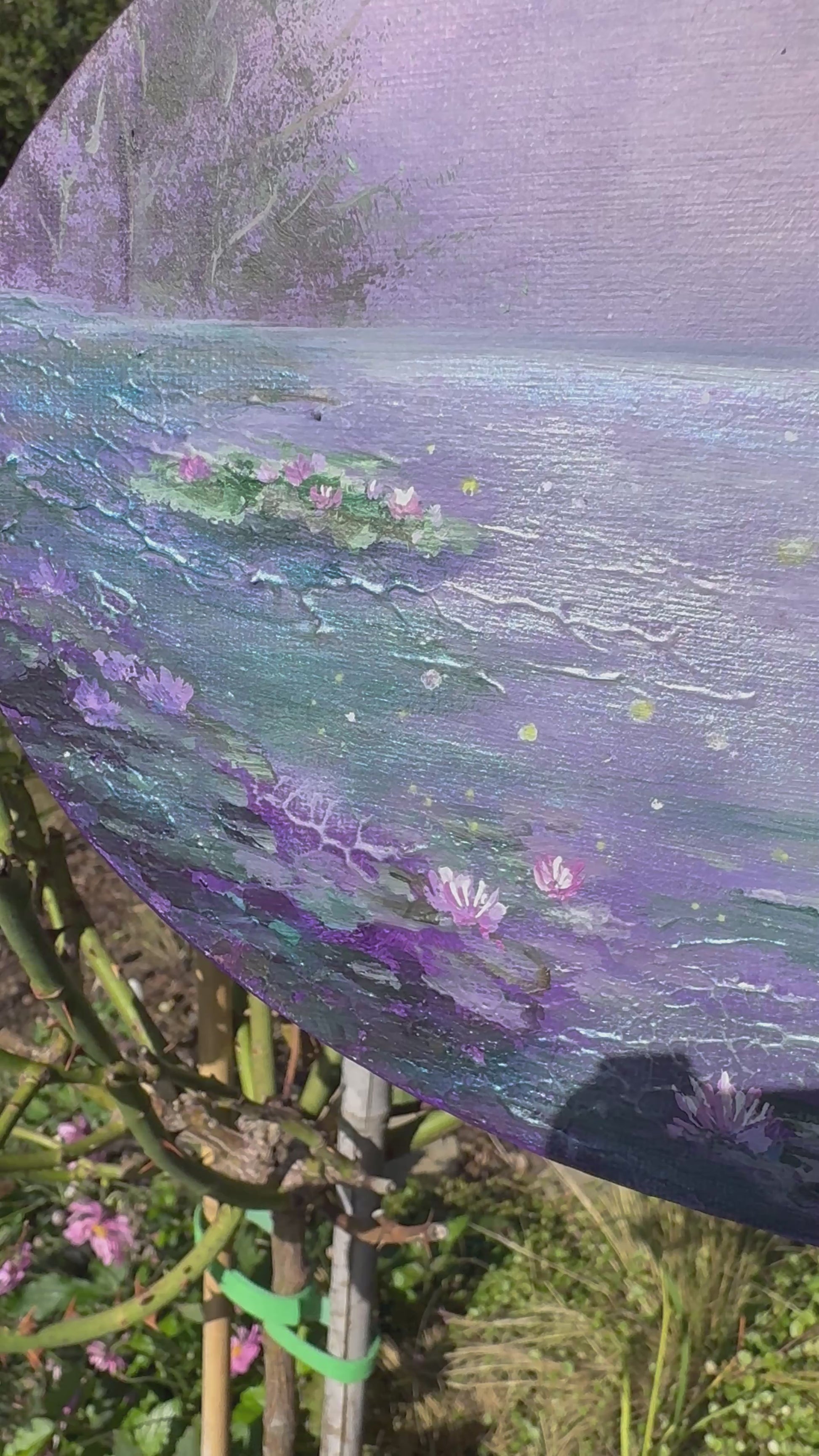 Oval painting from Shimmering ponds collection. Please, check the video - it really shows the beauty of this small piece of art.