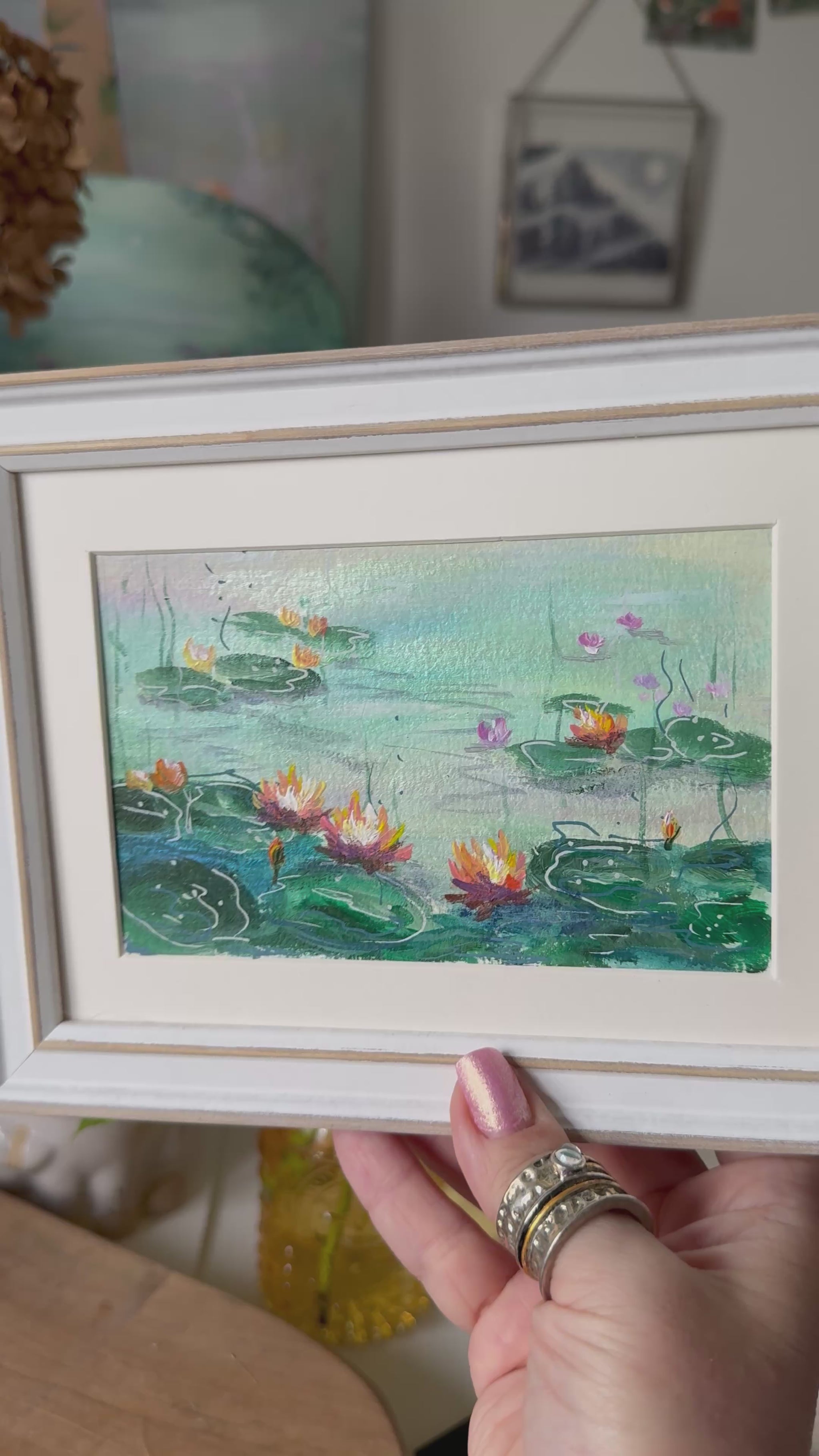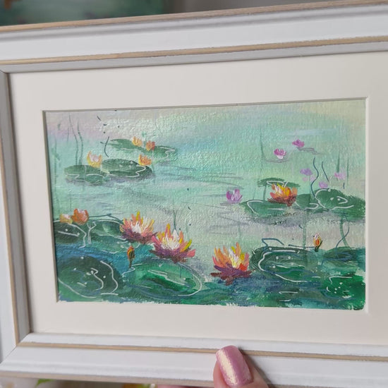 A series of miniatures inspired by the Impressionists, especially Claude Monet’s lily ponds. Yet these works carry their own voice - with pearlescent tones that catch the light and make the water shimmer.