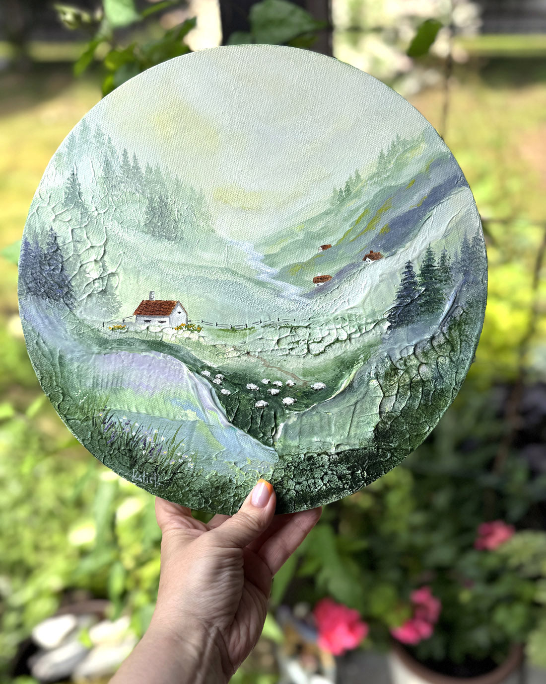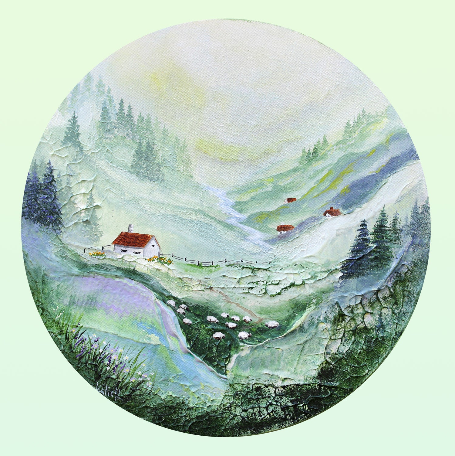 What is this painting? Tranquility! Serene scenery of the green pastures in the beloved countryside. Best summer memories of our childhood)