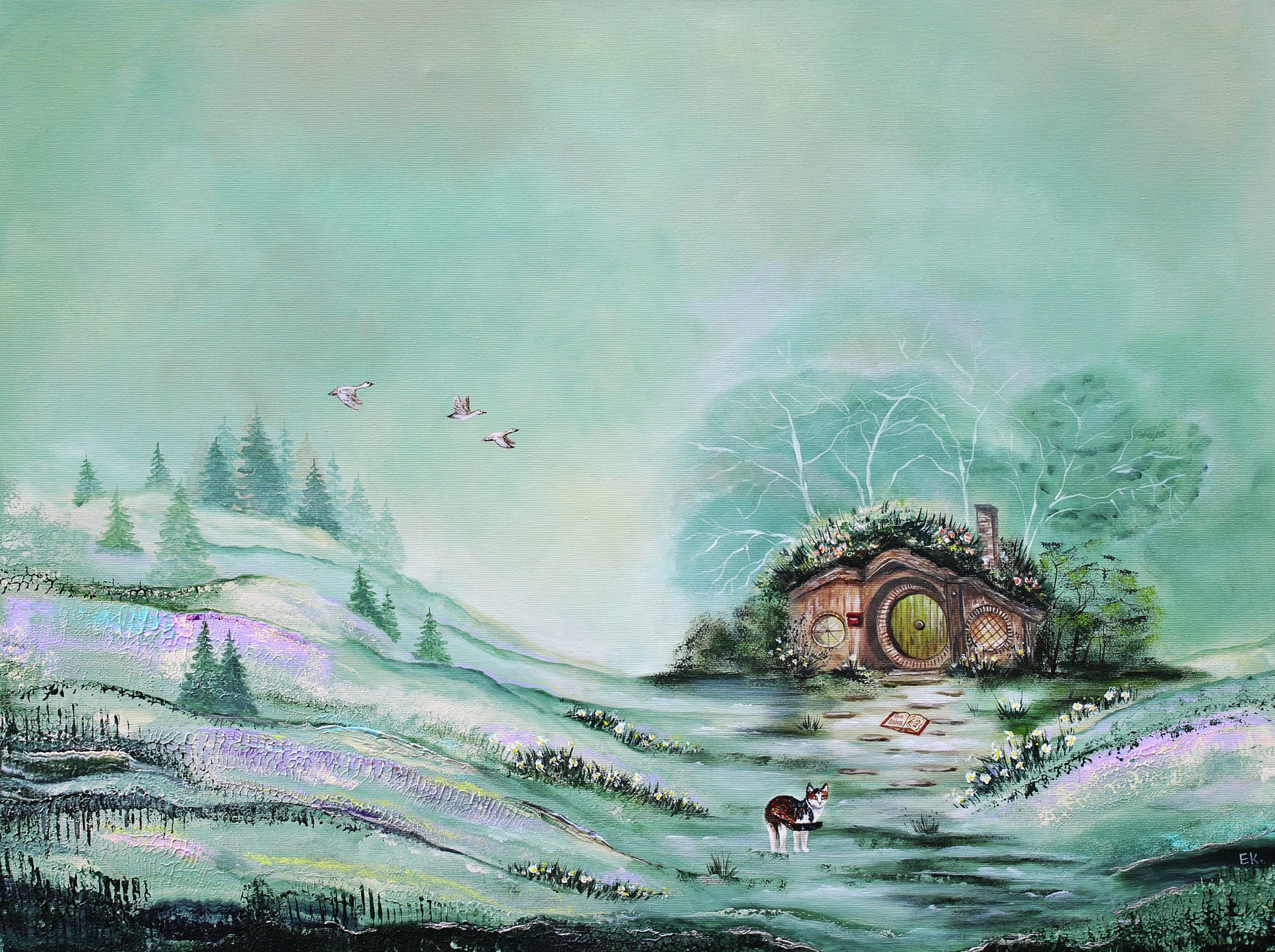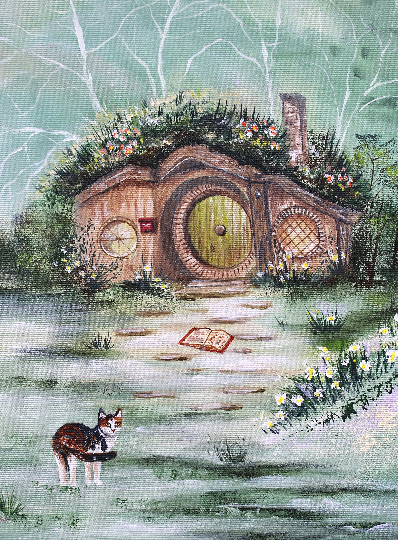 What if the famous Tolkien book was a painting? I'm sure this cozy cottage will be there)