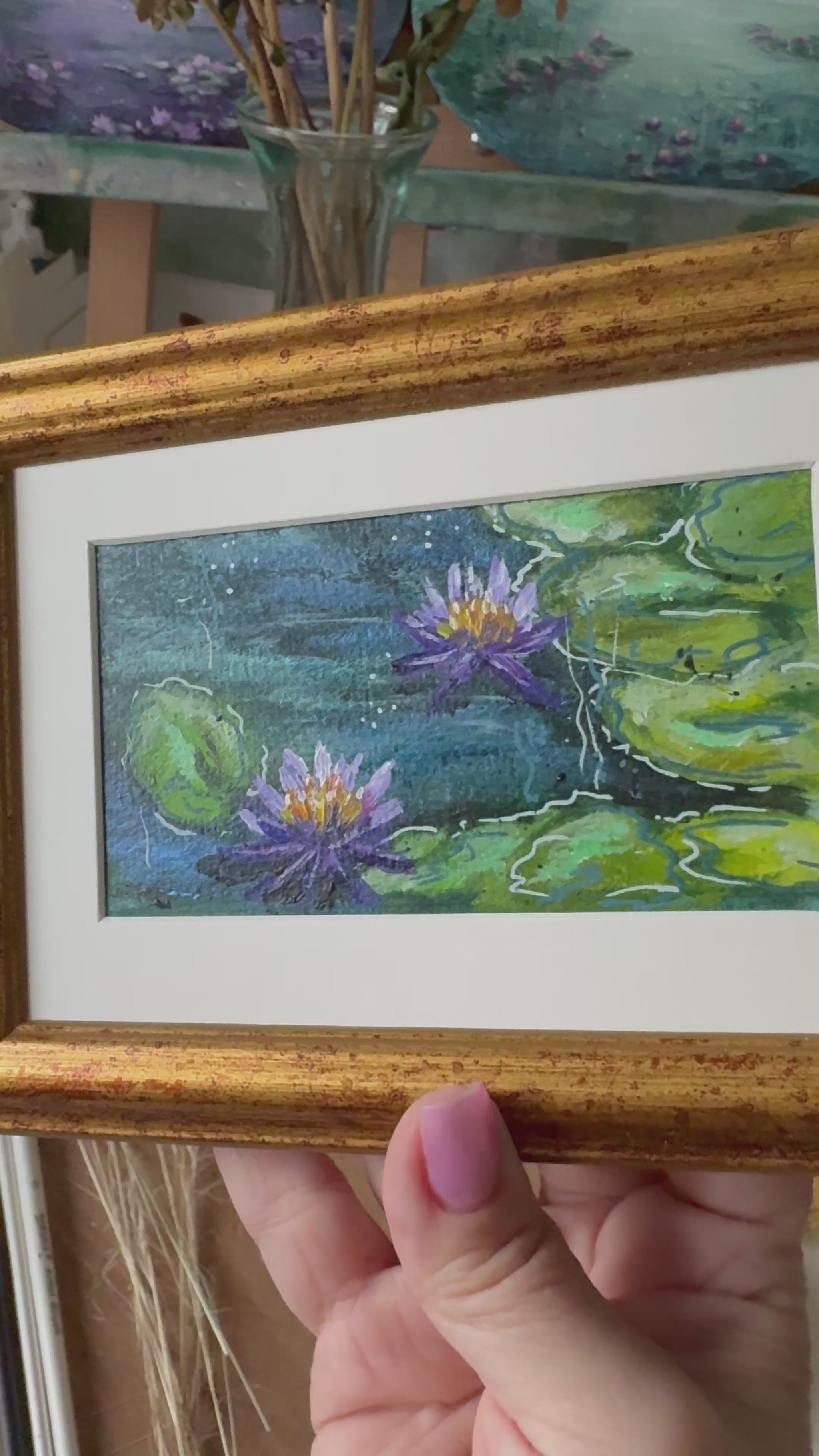 A series of miniatures inspired by the Impressionists, especially Claude Monet’s lily ponds. Yet these works carry their own voice - with pearlescent tones that catch the light and make the water shimmer.