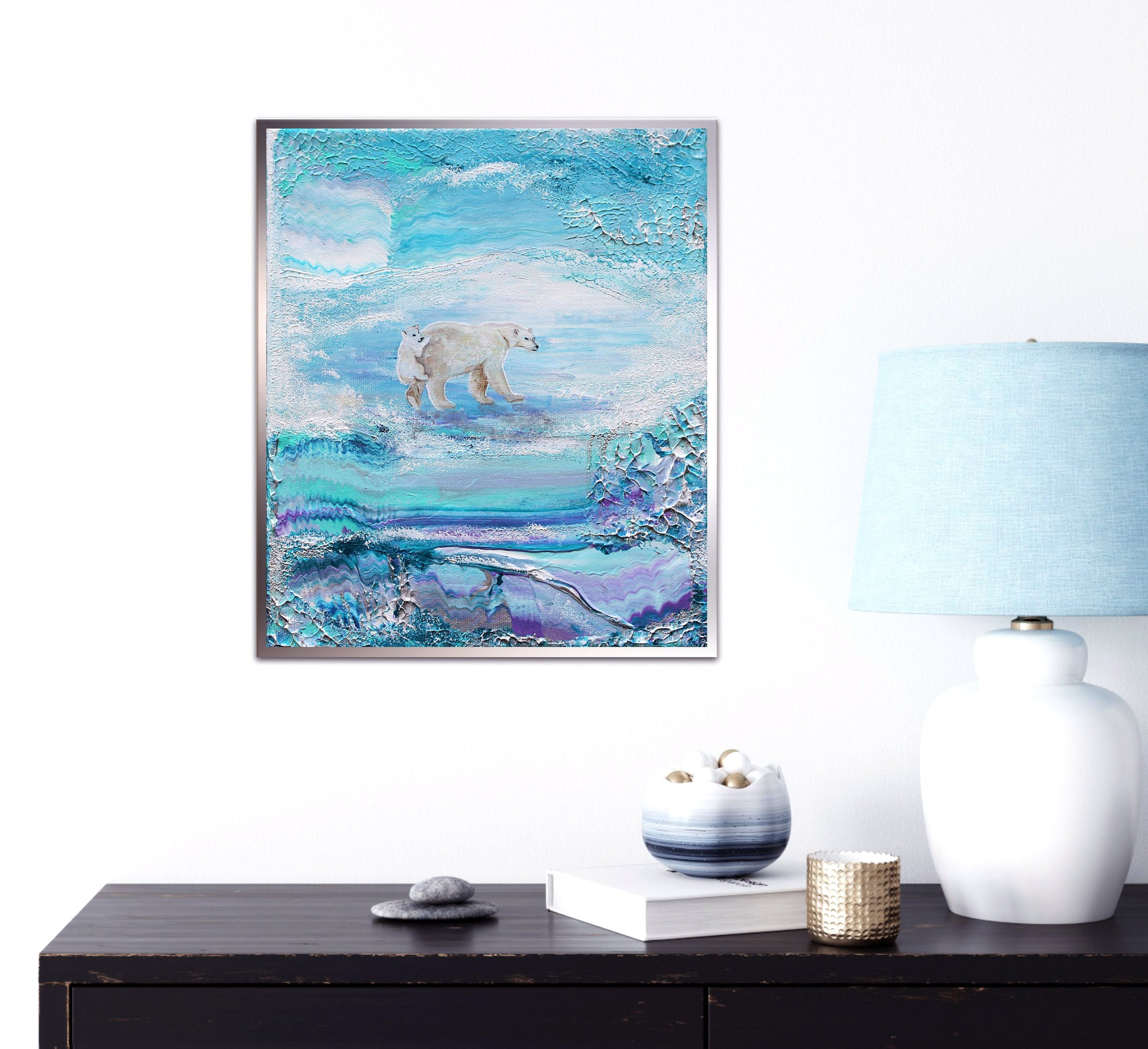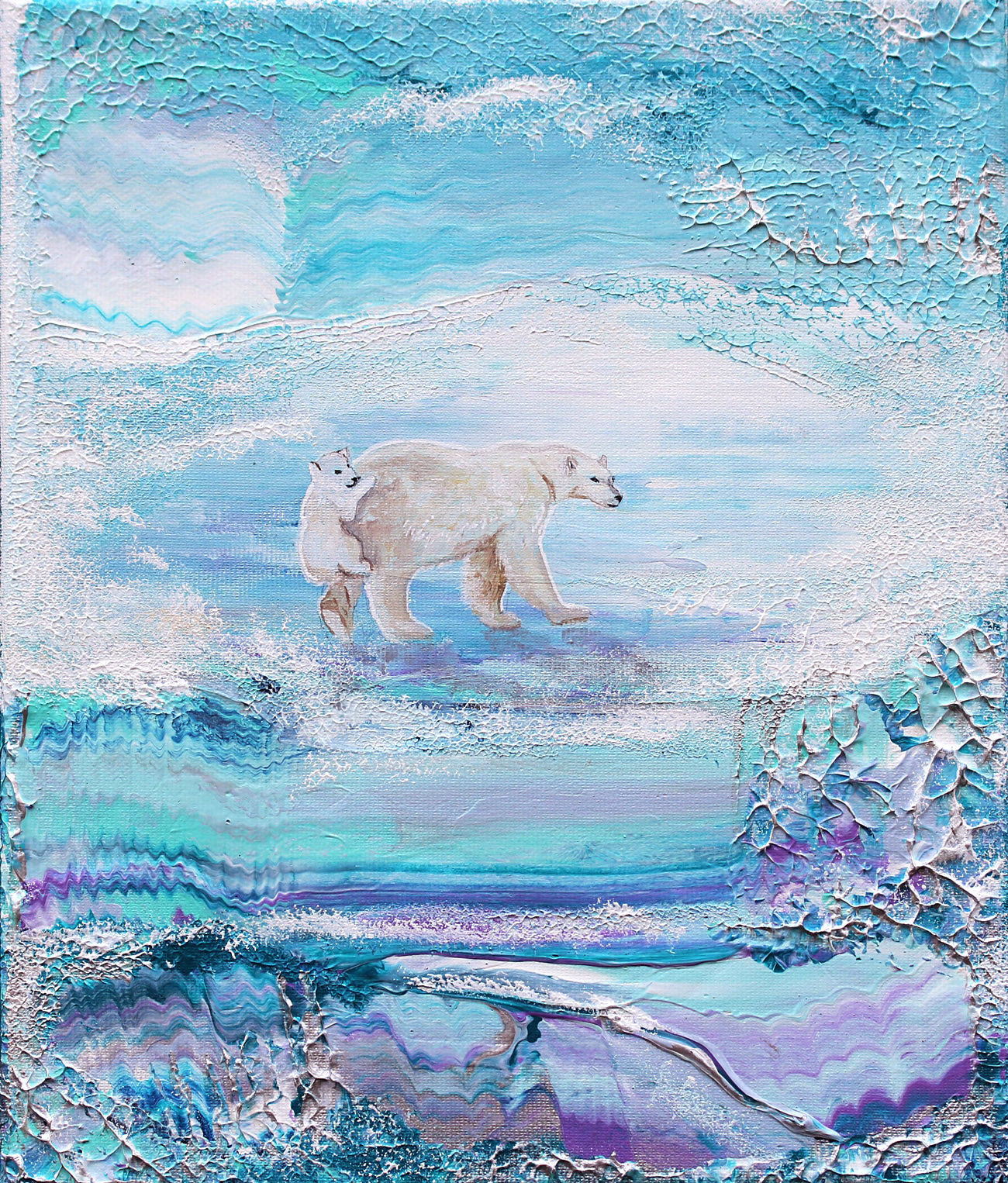 In the heart of the Arctic, where winter’s grip begins to loosen, a mother bear carries her cub on her back across the fragile ice. The world around them is caught between seasons, spring begins to soften the edges of the frozen landscape. It’s a time of transition, of quiet resilience, and of love that endures even in the harshest of places.