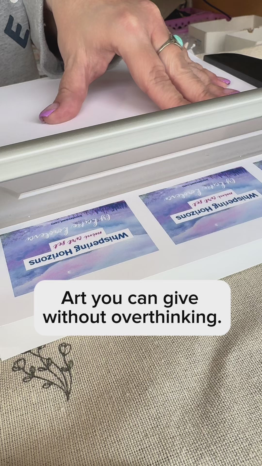 A quiet, intimate way to live with the artwork in a small format.