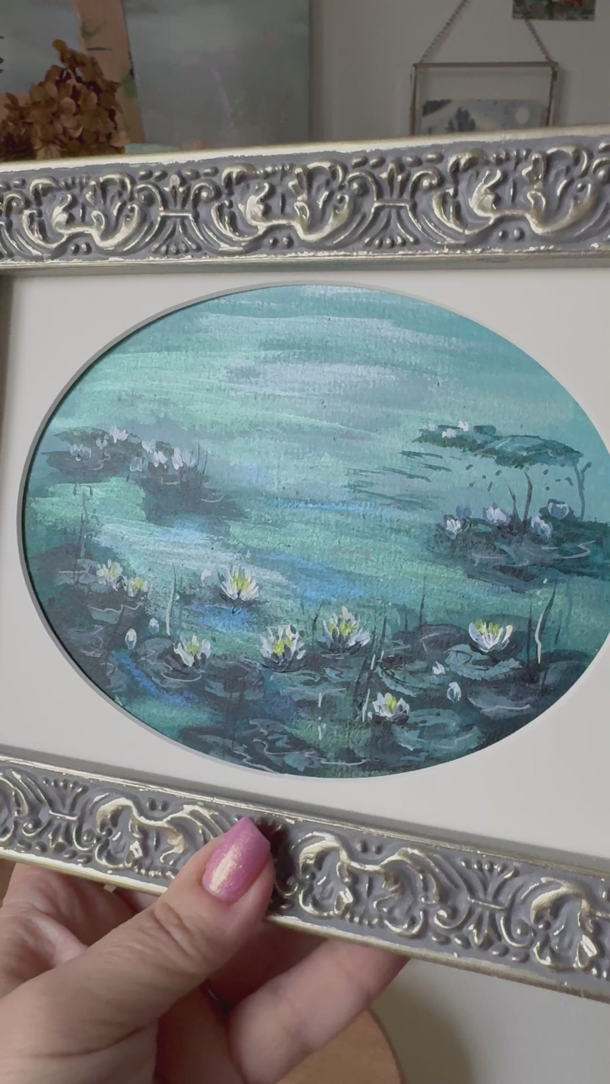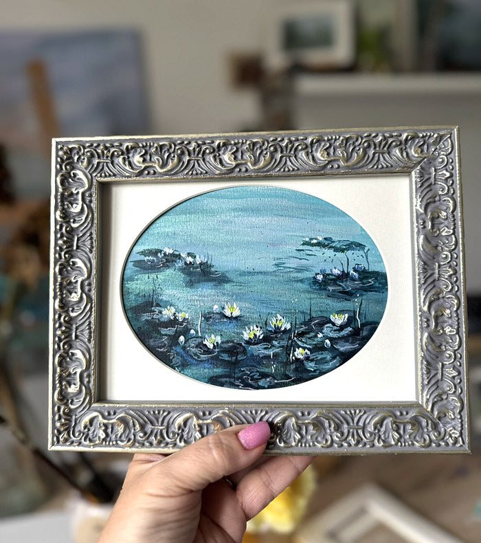 A series of miniatures inspired by the Impressionists, especially Claude Monet’s lily ponds. Yet these works carry their own voice - with pearlescent tones that catch the light and make the water shimmer.