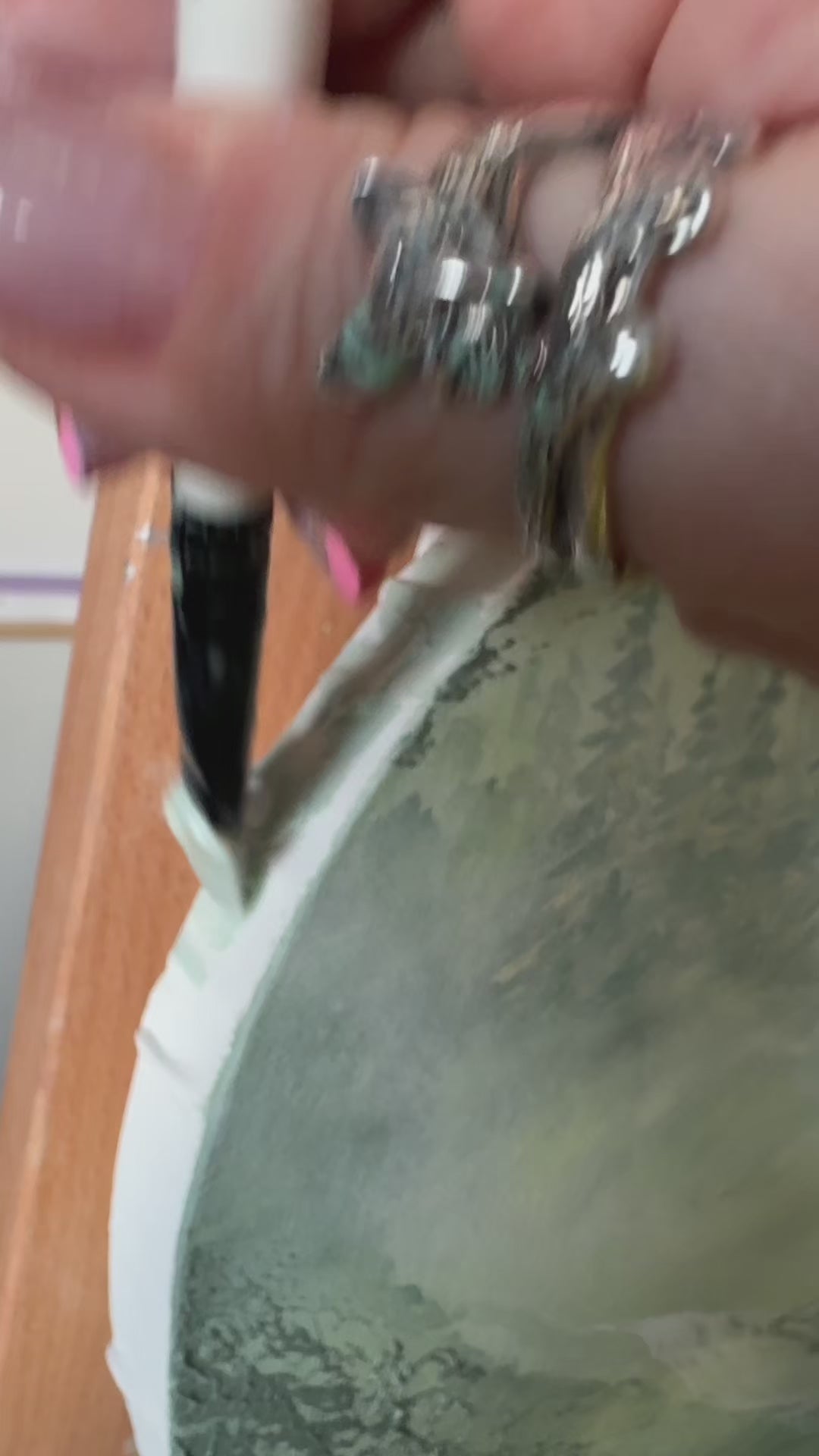 There is something special about oval canvas! And this color palette of pale lemon, sage green and indigo grey reminds me a little bit of vintage picture - just perfect match.