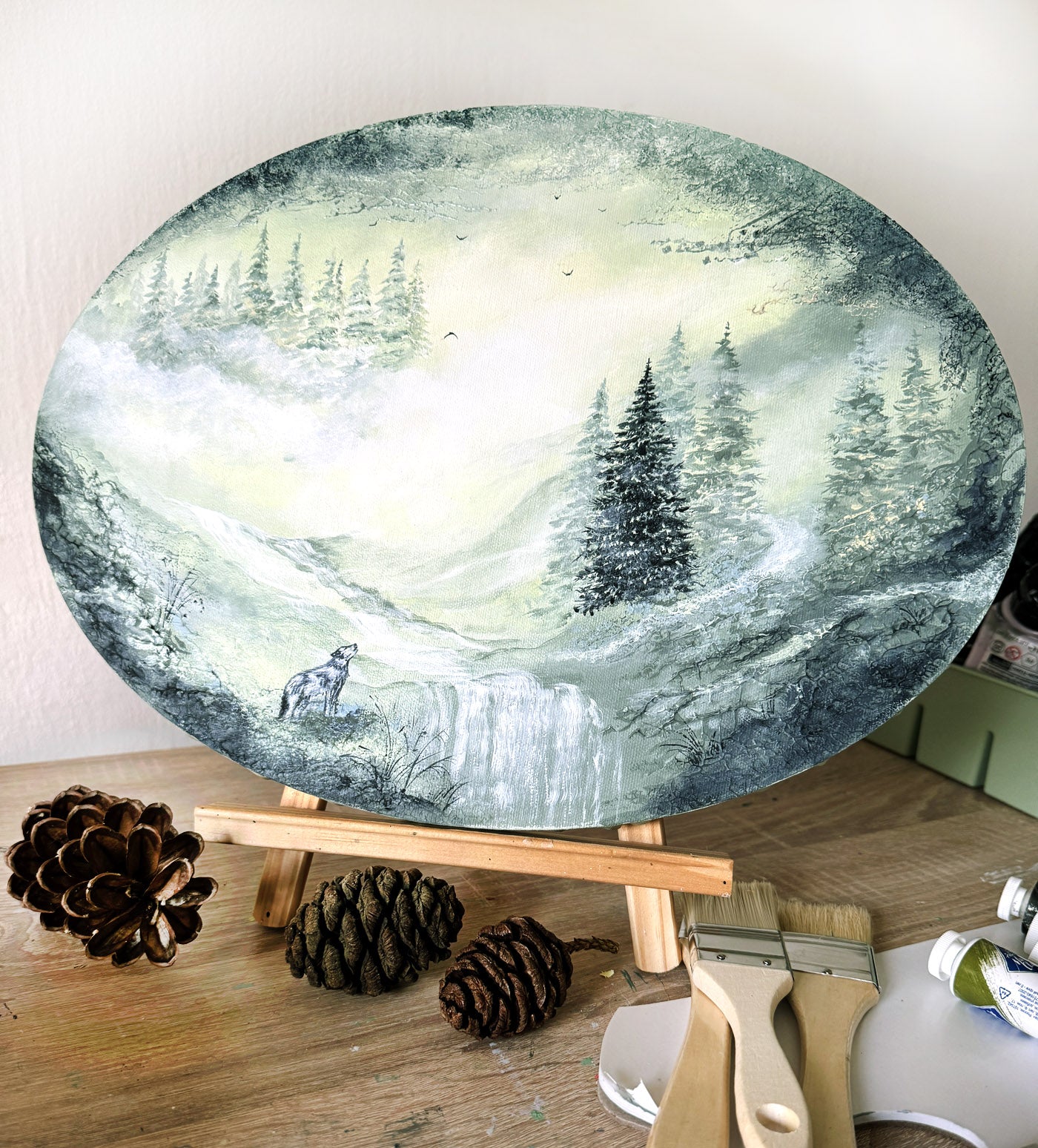 Original acrylic painting on oval canvas.
